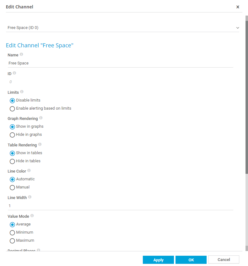 It is not available for sensors that show difference values, such as traffic channels. Depending on this setting, the channel can not only show averages, but also the minimum or the maximum values in the graphs for the respective time spans.