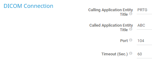 Enter the Application Entity Title (AET) of PRTG to initialize a DICOM connection.