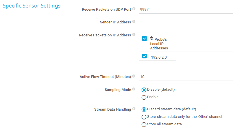 This sensor requires that the jFlow export of the respective version is enabled on the target system. The target system must send the flow data stream to the IP address of the probe system.