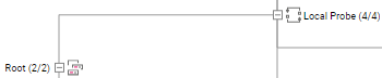 Gray lines show a dependency by inheritance (Use parent setting). The source of the dependency is the parent object on the left end of the line, for example, Root is the parent of Local Probe.