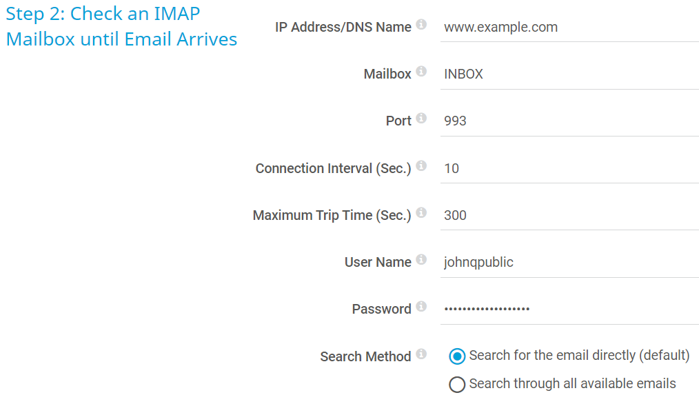 Step 2: Check an IMAP Mailbox until Email Arrives