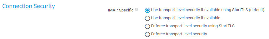 Use transport-level security if available using StartTLS (default): Try to connect to the server via a Secure Sockets Layer (SSL)/Transport Layer Security (TLS) secured connection and StartTLS. If the server does not support this, the sensor tries to connect without connection security.