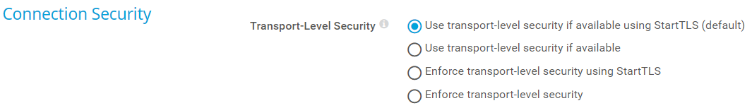 Use transport-level security if available using StartTLS (default): Try to connect to the server via a Secure Sockets Layer (SSL)/Transport Layer Security (TLS) secured connection and StartTLS. If the server does not support this, the sensor tries to connect without connection security.