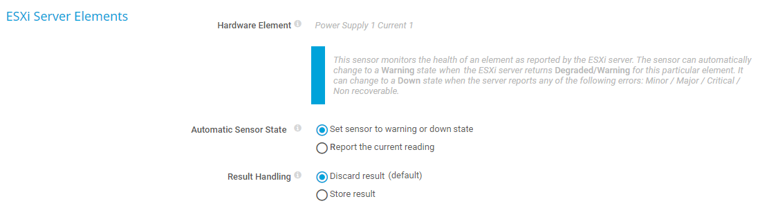 Discard result (default): Do not store the sensor result.